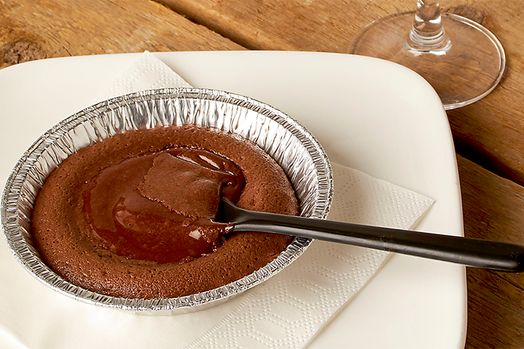 - Before serving, place the ramekins in an oven at 190°C for 6 to 8 minutes (depending on the amount you pour into the ramekins). Bake until the outside is solid and the inside is still 'runny'.