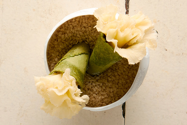 5. Vul de spinaziehoorntjes met de cressonmayonaise.