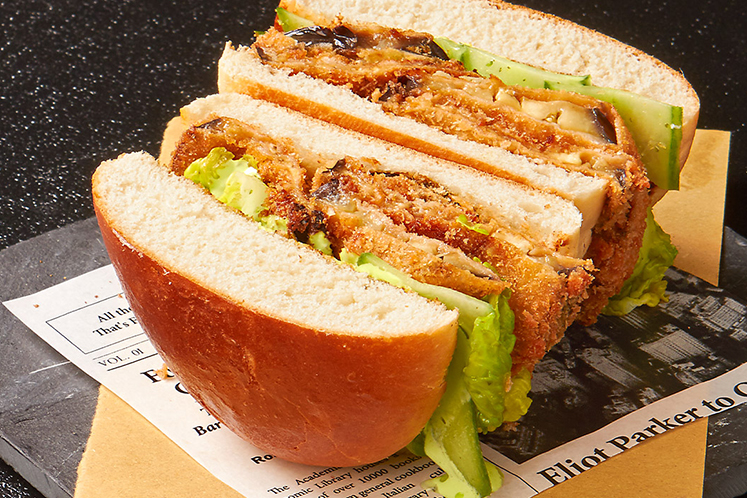 Aubergineburger met zoet-zure groenten en vadouvanmayonaise