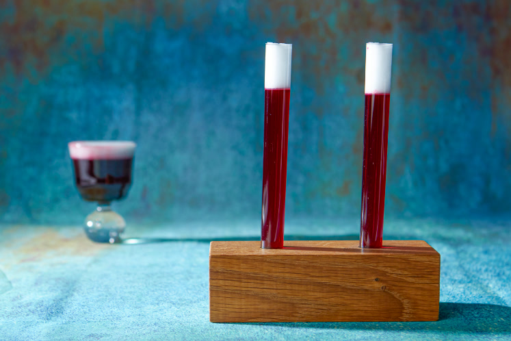 2. Schenk de cocktail in de reageerbuisjes.