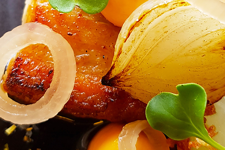 - Snijd er mooie plakken van. Regenereer in een mild-hete oven en brand vlak voor het opmaken kort af met een gasbrander.