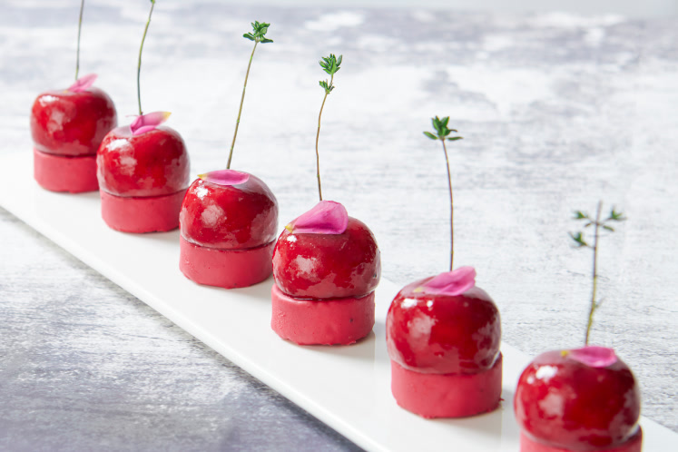 - Smelt de chocolade met de rode kleurpoeder en haal de bakjes erdoorheen.