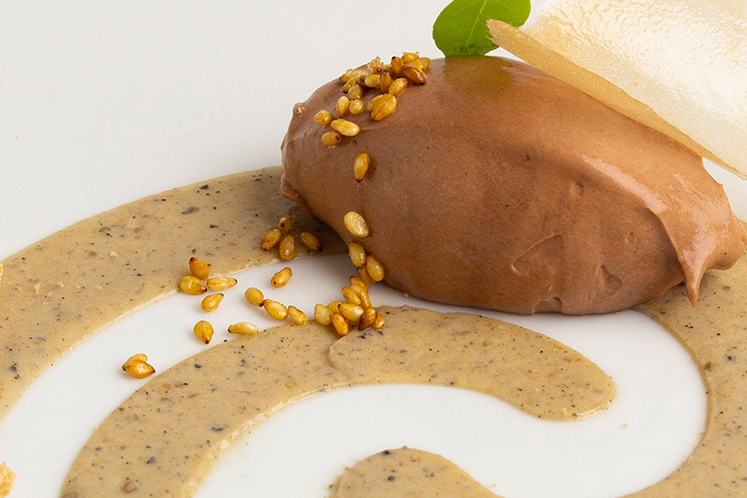 Chocolade ganache met sesam anglaise