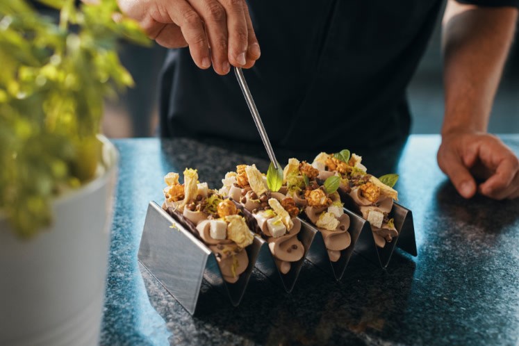 - Vul de taco shell met een laagje opgeklopte ganache.