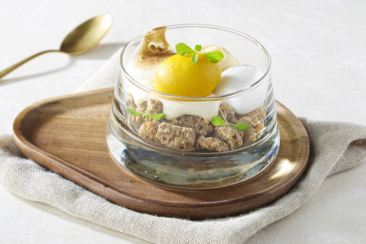 Een heerlijk dessert met de smaak van citroen op verschillende wijze geserveerd in een glas.Dit dessert bestaat uit: