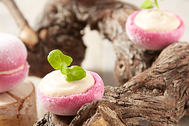 2. Vul een sifon met de espuma en belucht met 2 patronen. Spuit een klein beetje op de crispy foam van rode biet en garneer met cress