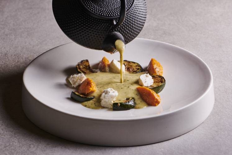 Gril de courgettes in de kamado voor een subtiele rooksmaak die je in een pan niet kunt realiseren.Zo krijgt de klassieke courgettesoep een nieuwe smaakdimensie.Benodigdheden