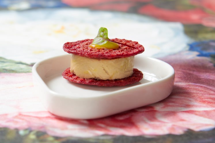 Gaufrette rode biet met gorgonzola-proseccocréme