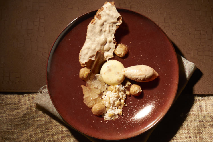 - Completeer met een quenelle hazelnootijs en wat ‘golddust’.