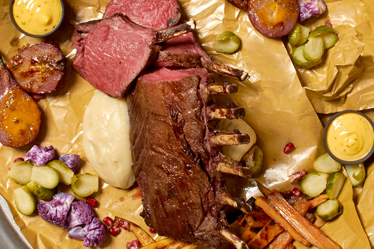 Hertenrack en sous-vide gegaarde groenten voor een gezellig sharing diner.Benodigdheden