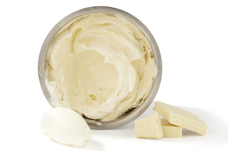 - Kook de melk en de ijs stabilisator in een sauspan. Giet dit over de geraspte witte chocola en meng totdat de chocola volledig is opgelost.