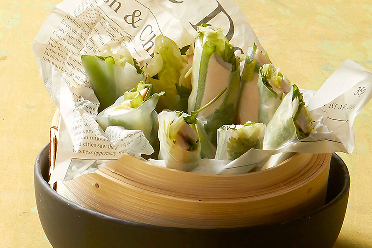 - Leg er een vulling op, bijvoorbeeld: lente-ui, gerookte of gebakken kip, reepjes ijsbergsla en verse koriander.