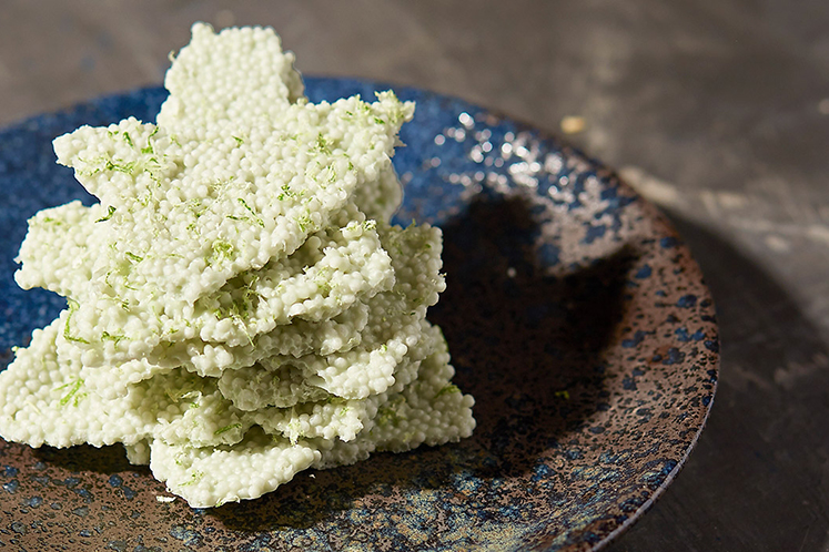 Deze crispy limoenchocolade past perfect als knapperig accent op desserts.
