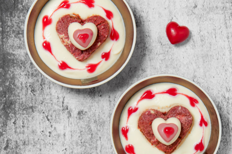 - Leg op de slagroom het red velvet hartjescookie.