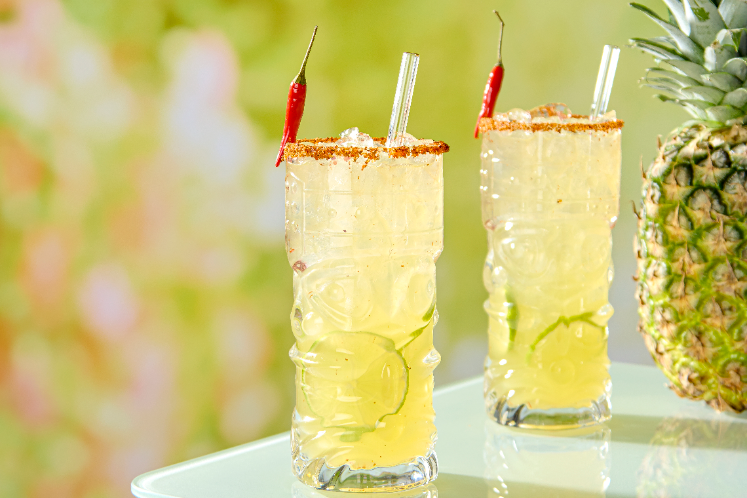 Verfrissende lemonade met geroosterde ananas, kokos en maple spice. Afgetopt met limoenrasp, chilipeper en een pittig randje.In drie stappen een frisse lemonade-mocktail serveren? Laat u deze zomer inspireren en creëer eenvoudig verfrissende combinaties met siropen, soda’s en verrassende garneringen.Benodigdheden