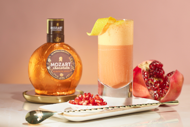 Cocktail met romige Mozart Chocolate Pumpkin Spice likeur vol chocolade, karamel, pompoen en specerijen.Mozart Chocolate Pumpkin Spice is een romige, lichtoranje crème-likeur met melkchocolade, karamel, pompoensap, kaneel, kruidnagel en een vleugje vanille. Als digestief al geweldig, maar ook perfect voor spannende cocktailtwists.Benodigdheden