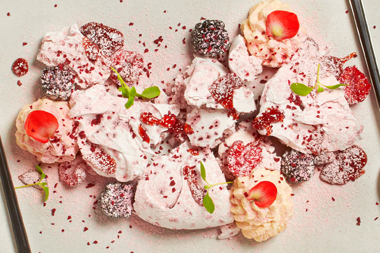 • Schep de pavlova op een bakmat en droog circa 3 uur op 85°C.