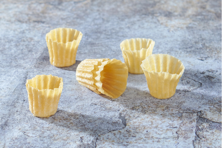 6. Dompel de tang daarna in het beslag en frituur tot bakjes (schud tijdens het bakken om de vormpjes los te maken).