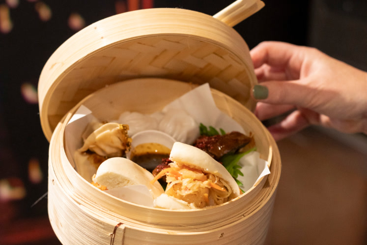 - Snijd de warme Asian purple bun doormidden. Leg een royale hoeveelheid pulled ribfinger op de onderste helft van de bun.