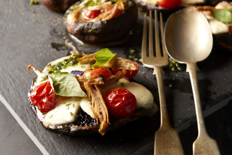 Gevulde portobello met mozzarella, tomaat en basilicum. Een smaakvol en vegetarisch gerecht, ideaal als voorgerecht of bijgerecht.Benodigdheden