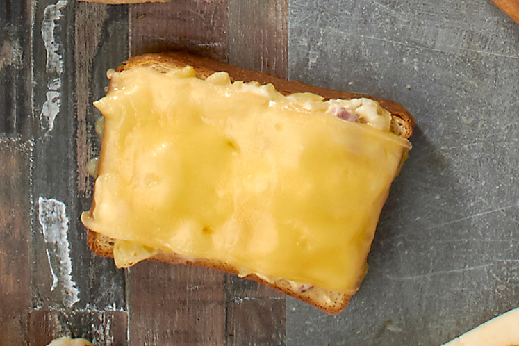 - Verwarm de tosti in de oven op 180?C, totdat de kaas gesmolten is.