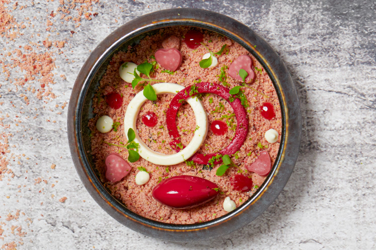 - Leg de crumble op de ringen en daaromheen de hartjes.