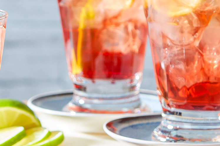 - Garneer met een schijfje limoen en een bloemetje.
