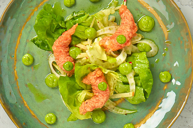 - Rangschik de salade met de tempura op een bord.
