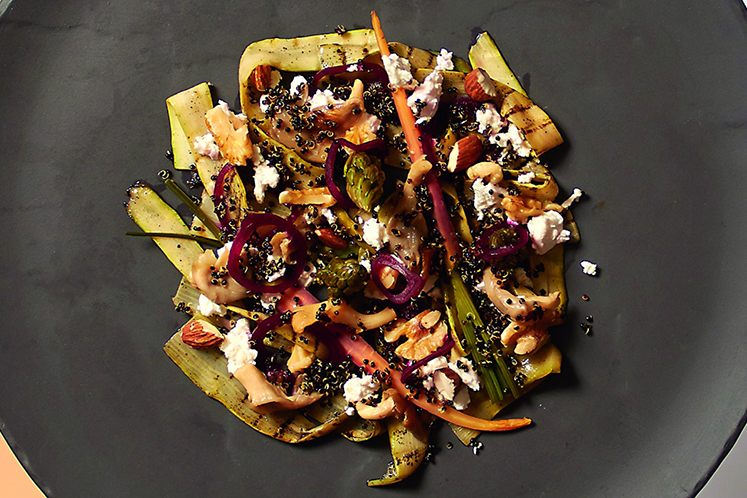 Salade van gegrilde aspergelinten, geitenkaas en black quinoa