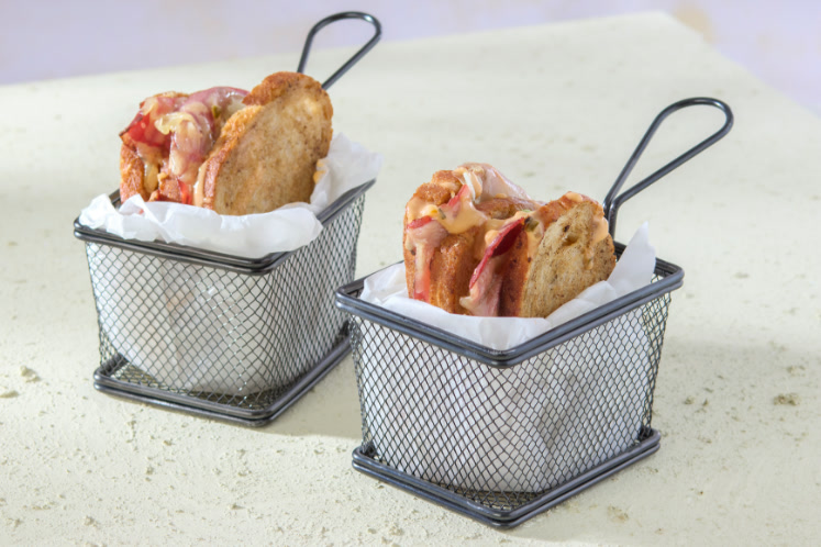 3. Beleg voor deze Scheiz Sandwich met pastrami, emmtaler, Thousand Island dressing en zuurkool en verwarm nog circa 4 minuten op 180˚C in de oven.