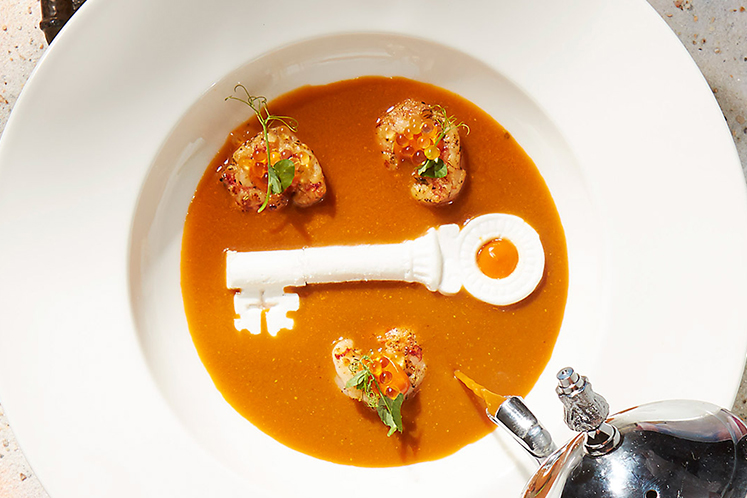 - De sleutel kan nu als een soort room door de soep worden geroerd.