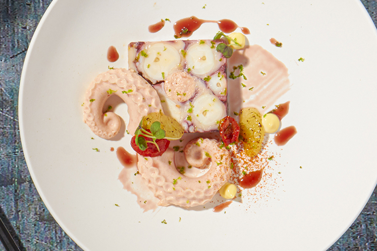 Terrine van octopus en luchtige tomatenmousse.Benodigdheden